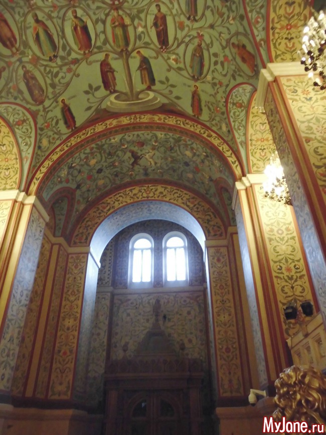 На потолке показано генеалогическое дерево русских князей и царей,