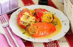 Тушить на среднем огне, под крышкой, 40 минут. Выключить огонь и дать настояться под крышкой еще 10 минут. Подавать со сметаной или с соусом, в котором тушились перцы.