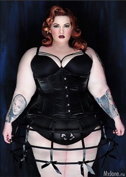 Лично у меня эмоции неоднозначные, когда я вижу Тесс в купальнике или белье. Я совсем не против ни возрастных моделей, ни plus-size, ведь у каждого своя ниша. У Тесс привлекательное лицо, но на раздетую, оплывшую девушку в татуировках мне лично смотреть неприятно. Из плюсов: моментально откладывается булочка, которую так хотелось съесть (c) Katysha