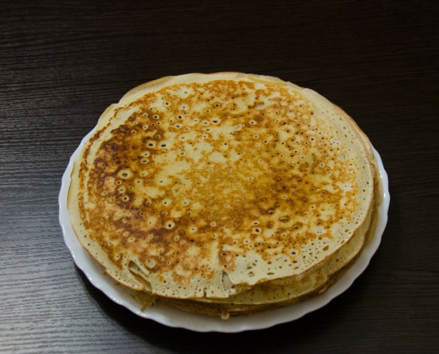 Рецепты с фото этих блинчиков был представлен Юлией в одном из выпусков «Завтрака с Юлией Высоцкой». Юлия рекомендует его всем поклонникам тонких блинов на молоке.