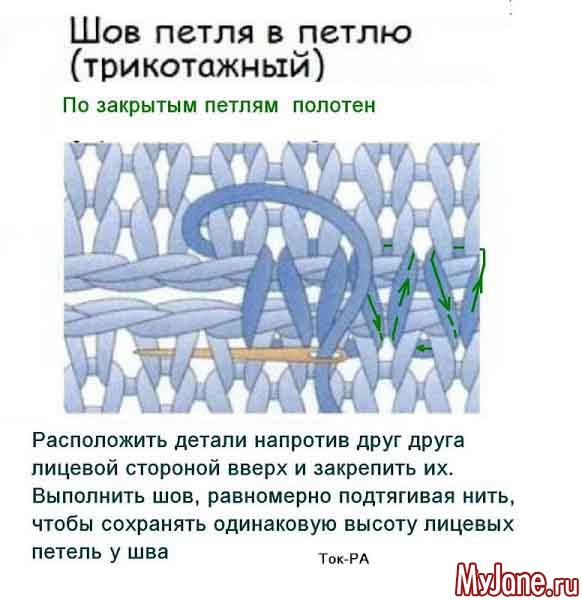 ряд закрывают по изнаночной стороне детали, петли при этом провязывают изнаночными;