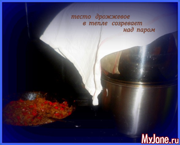 Потом разделать на пирожки. Слепить и 15 минут на расстойку под марлевой пелёнкой...