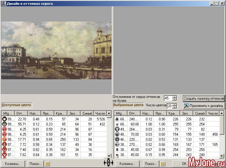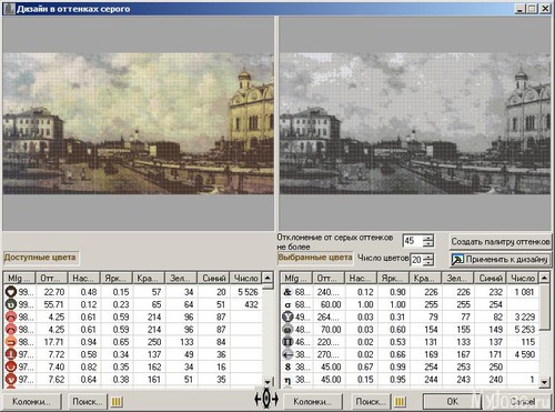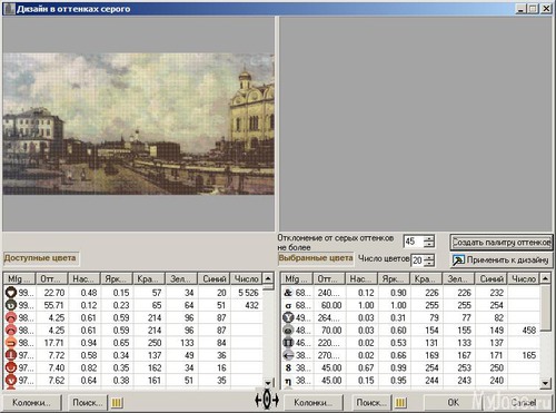 В правой нижней части окна диалога получим вариант палитры в оттенках серого, соответствующий нашим параметрам
