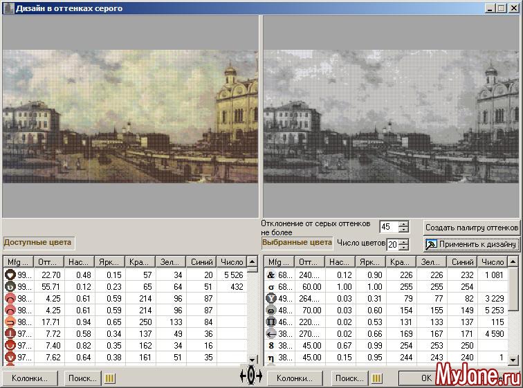 - величину допустимого отклонения серого "цвета" от чистого оттенка "черно-белый".