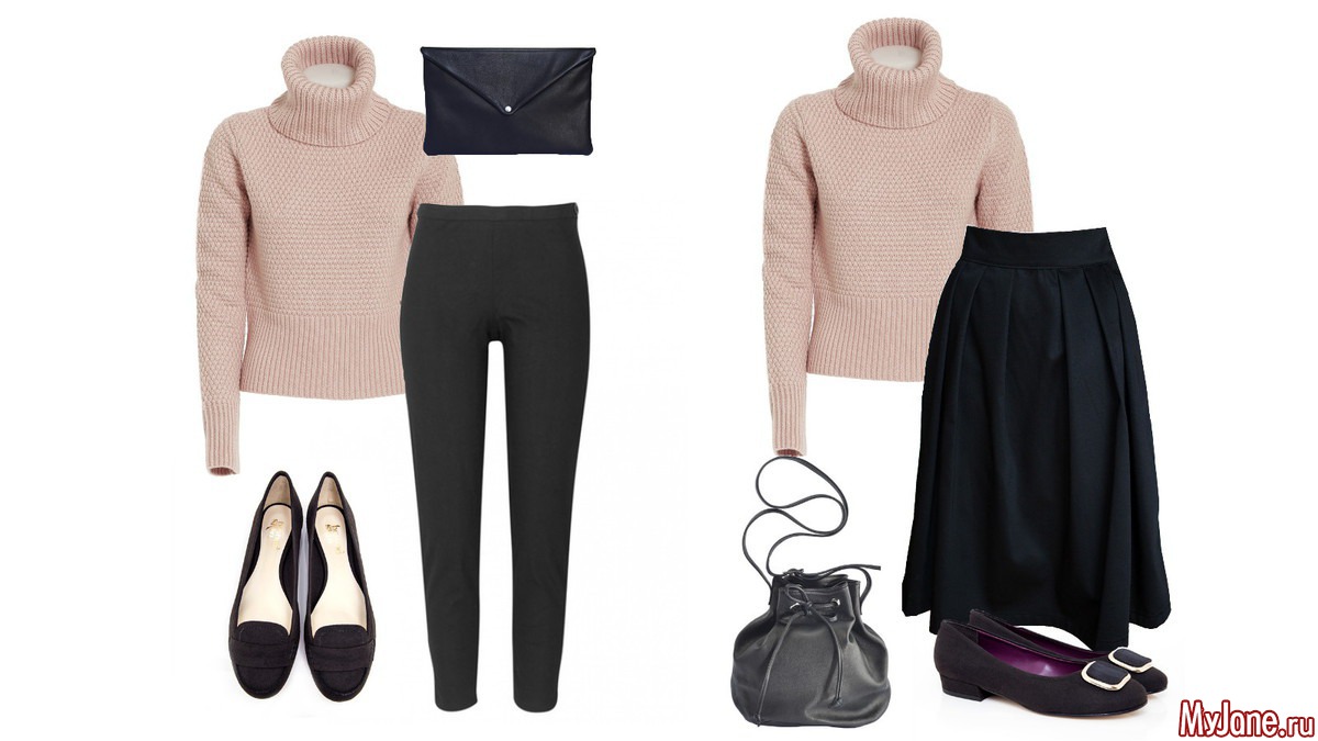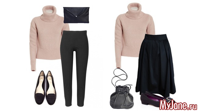 Обратите внимание на цвет. Если вы подберете к водолазке обтягивающий низ такого же цвета, ансамбль будет смотреться слишком вызывающе или вообще будет напоминать трико.