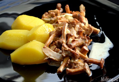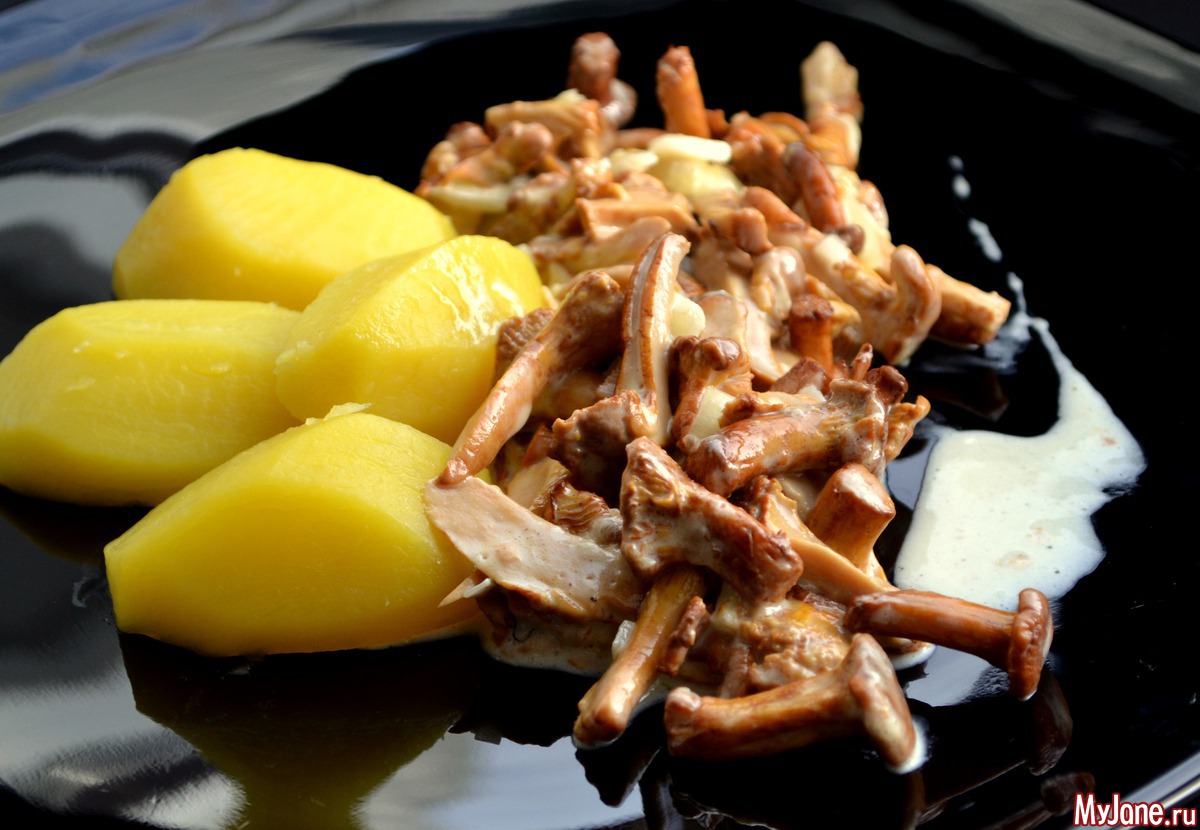 Лисички, тушеные в сливках....