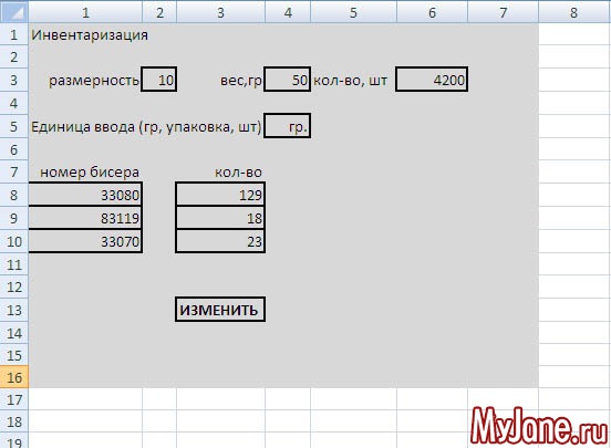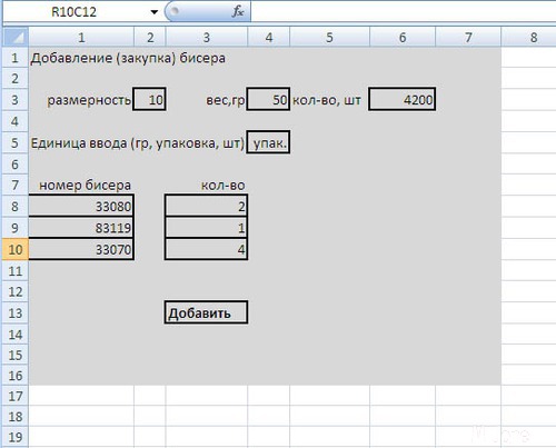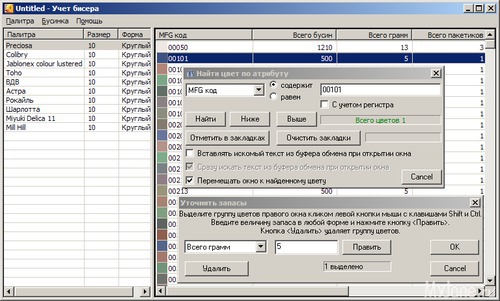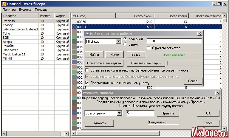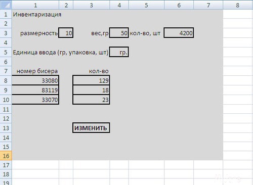 И, конечно, надо иметь возможность провести инвентаризацию (что-то просыпалось, что-то забыли раньше внести в базу и т.д.): взвесить бисер и откорректировать данные в базе .