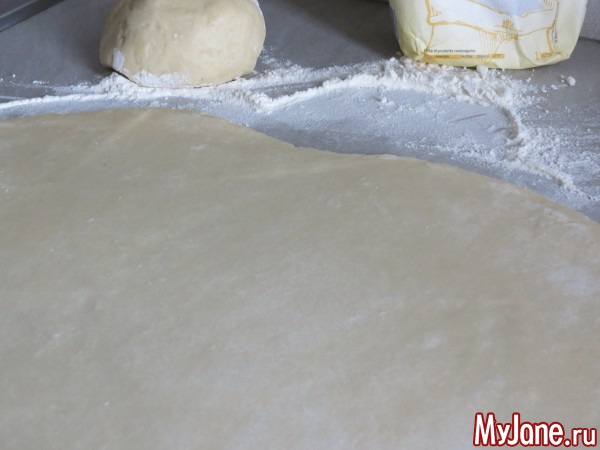 разделить тесто на 2 колобка / первый чуть больше второго /.