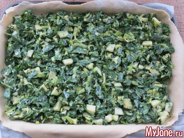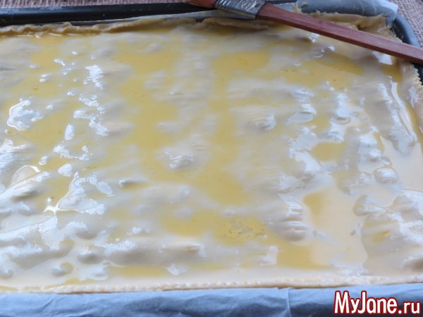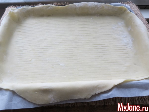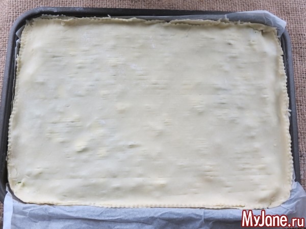 покрыть вторым слоем теста и проколоть повехность вилкой.
