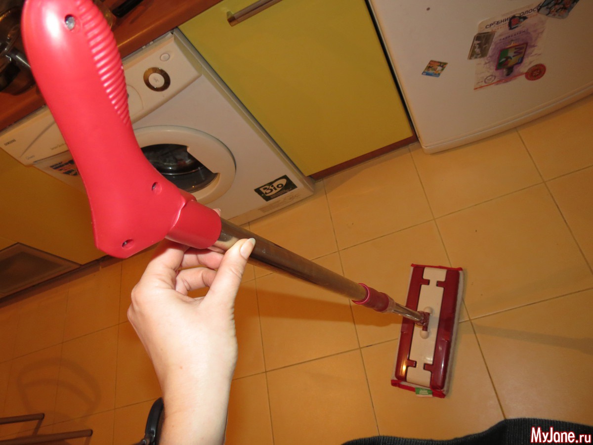 Шваброй я вполне довольна, мне нра как она моет и собирает пыль, ей можно протереть всю кухню и не будет не разводов не крупинок пищи, еще она проходит в очень труднопроходимые места такие как под диван.