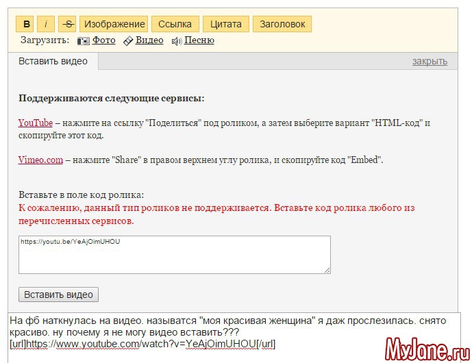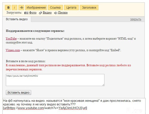 Жмите Видео, выскочит поле с окошечком и надписью: Вставьте в поле код ролика: