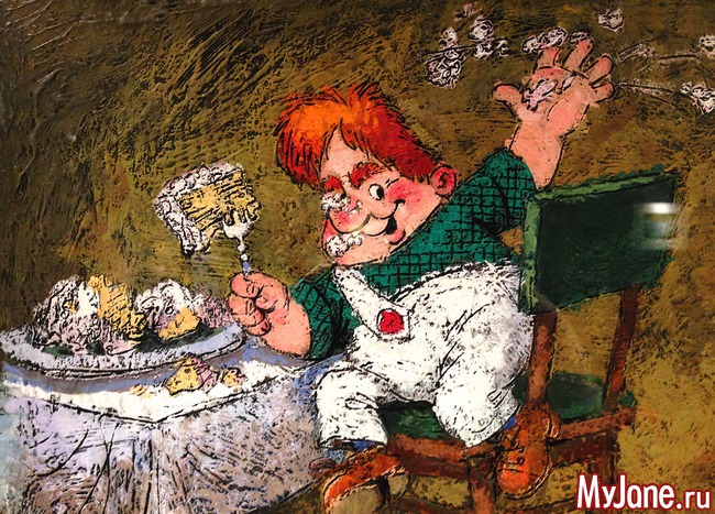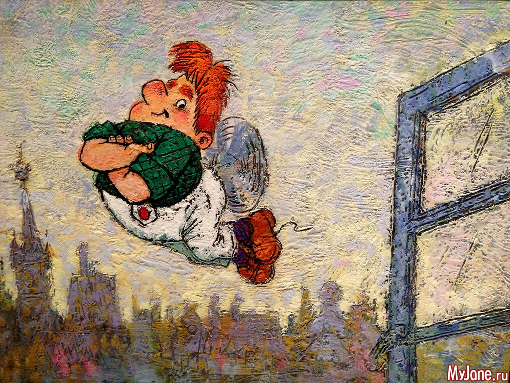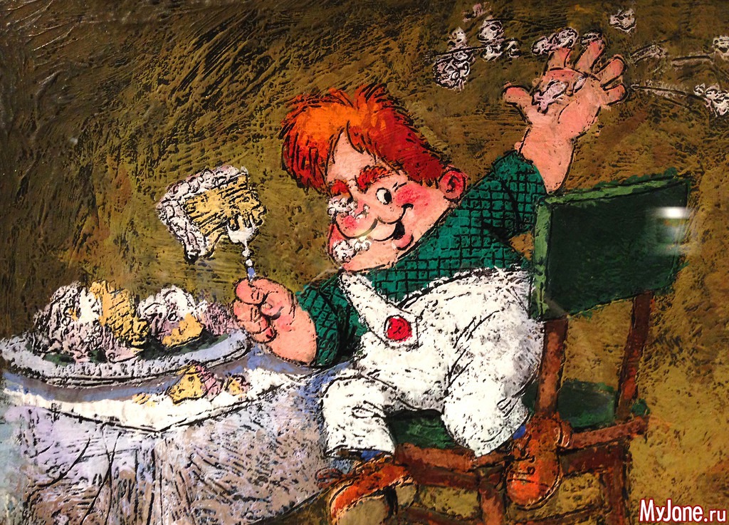 Он создал образ, не читая сказку Линдгрен и не видя иллюстраций Илун Викланд, по которым летающего поедателя тортов знают все дети мира.