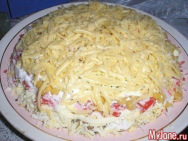 Выкладываем слоями, промазывая майонезом.