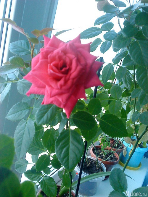 В зиму побоялась оставить её на улице, пересадила опять в горшок, унесла на террасу.