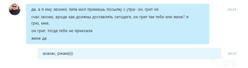 А сегодня вообще палево произошло! У нас есть охранник в подъезде, и посылки, когда никого нет дома, курьеры оставляют у него.
