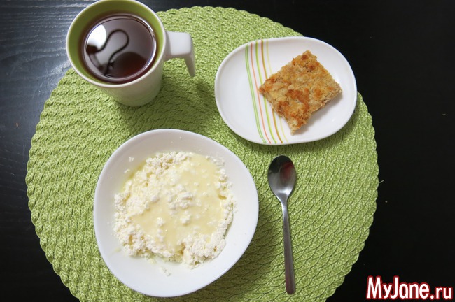 творог со сгущенкой, пирог яблочный насыпной, чай