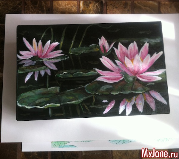 Не всегда все получается как хочется. Первый вариант шкатулки был почти нарисован, но он не совсем удался, и, когда покрывала шкатулку лаком, он неровно лег и шкатулка оказалась испорчена.