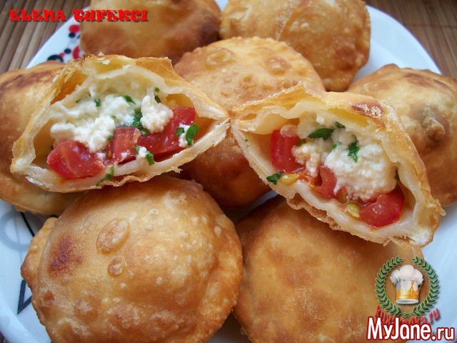 Они даже вкуснее чебуреков! Хрустящее тесто идеально сочетается с ароматными помидорами, творожной начинкой, чесноком и зеленью, они получаются очень сочными и ароматными!
