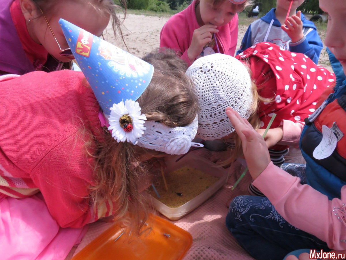 в большой судок насыпаны болтики и винтики и засыпаны пшеном, нужно без рук трубочкой раздуть пшено и найти винтики, повторчяли много раз и все вместе и по очереди