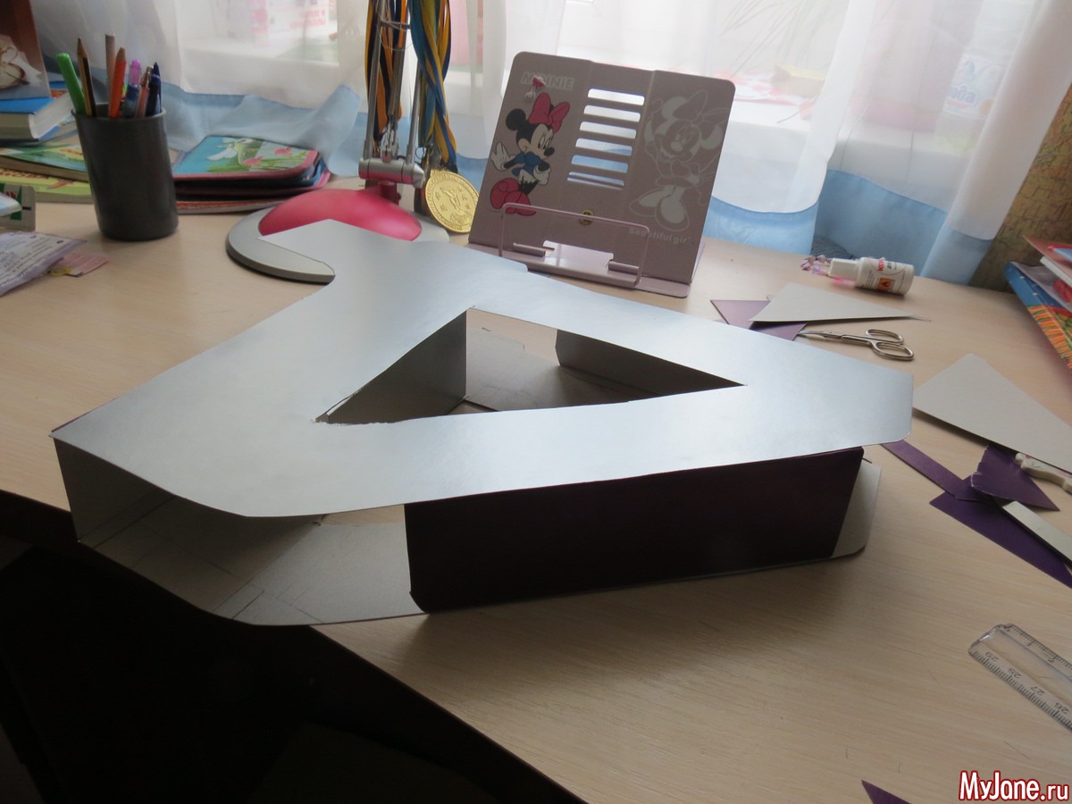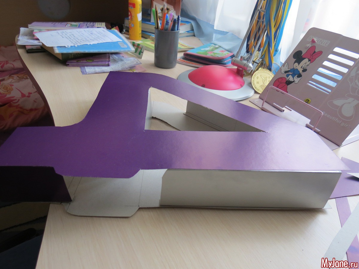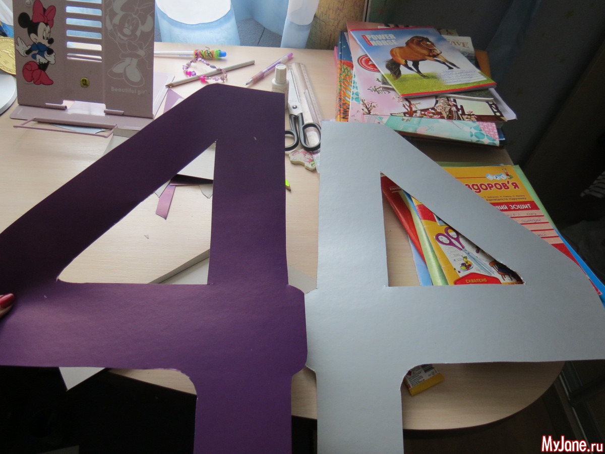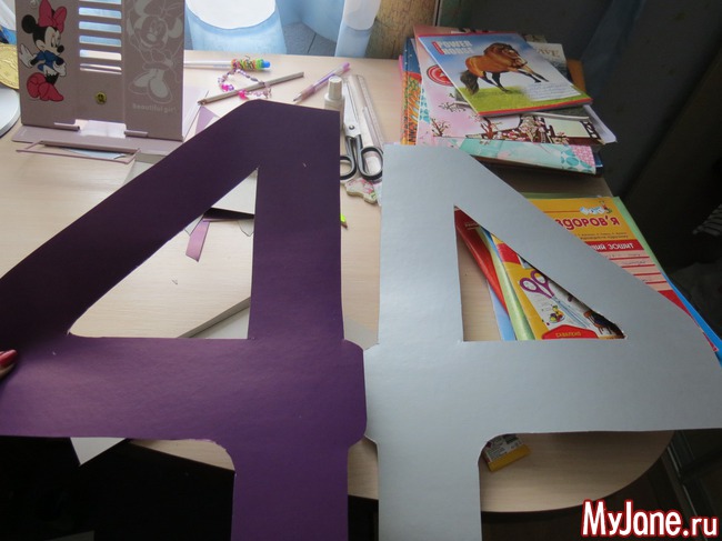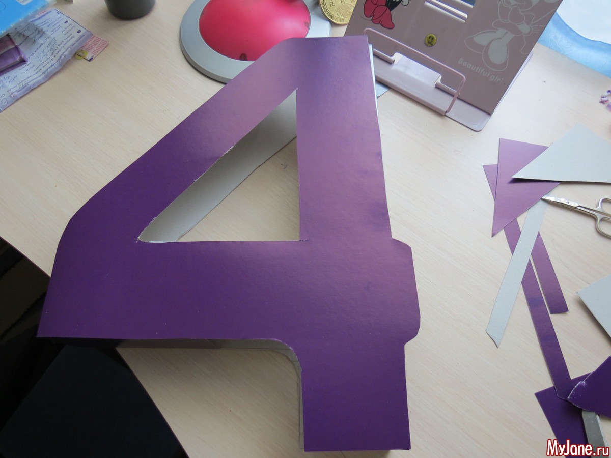 Делала из того что было дома, взяла 2 листа картона А3 на одном нарисовала 4 и вырезала по контуру две четверки