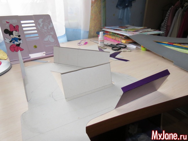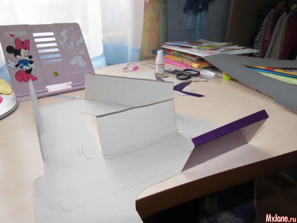 приклеила боковушки клеем момент кристал, наверное можно было бы и ПВА но он так долго сохнет и если картон супер гладкий то плохо клеит