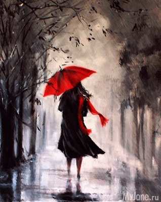 В размокшем свете фонаряСтоит она с зонтом устало.