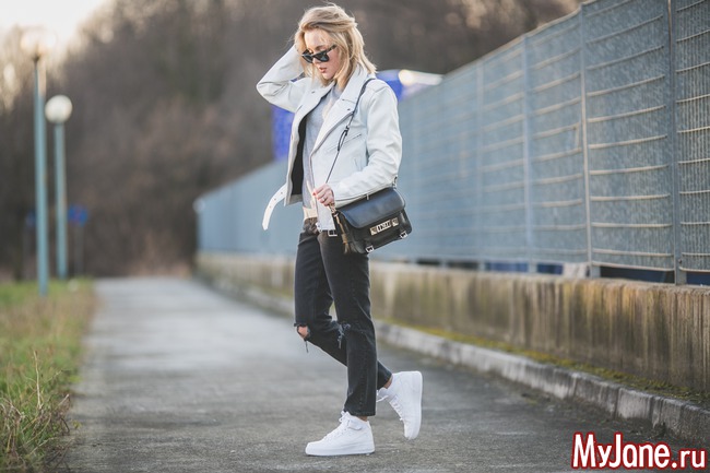 Обратить внимание также нужно на материал, из которого сделана обувь. К шерстяным платьям и пальто подбирайте кроссовки или кожаные слипоны, а для летних луков - кеды из парусиновой ткани.