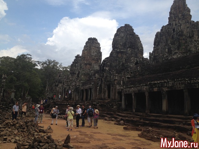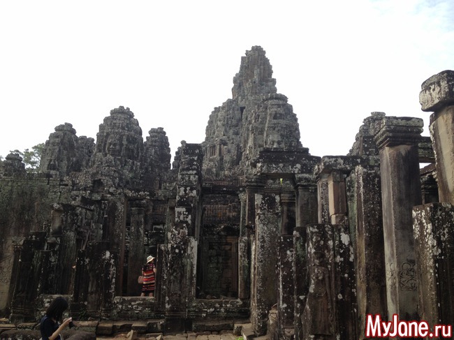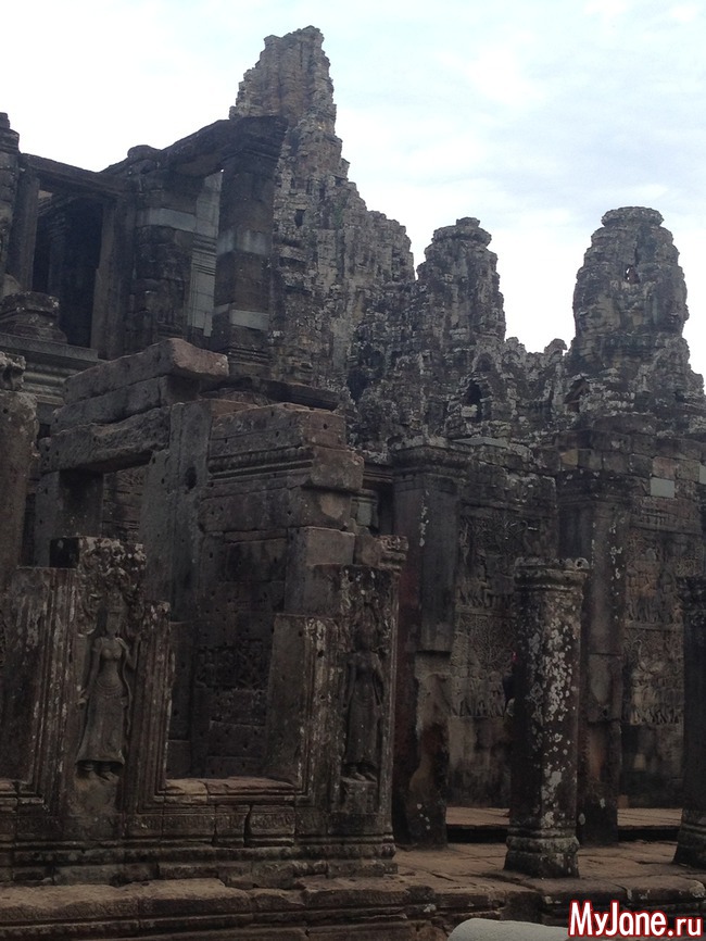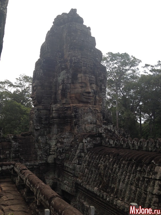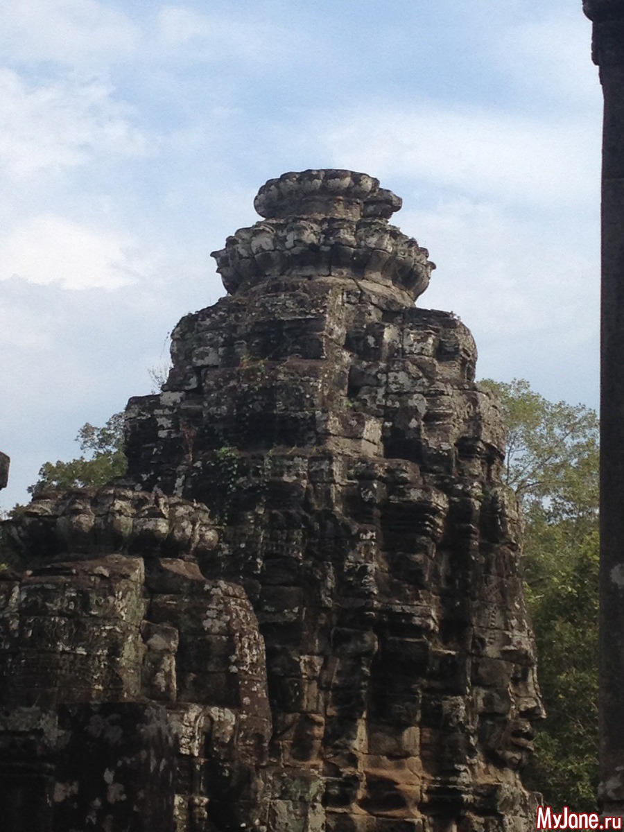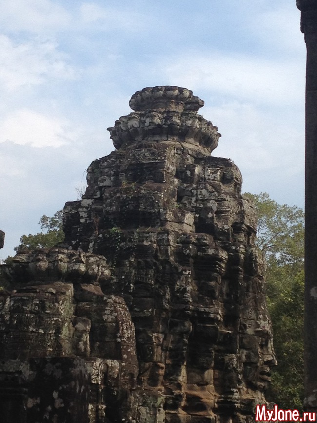 Байон напоминает лабиринт из множества зеркал, в которых отражаются исполинские головы. Где бы вы ни находились, эти загадочно улыбающиеся лица смотрят на вас отовсюду. Интересно, что во время строительства Байона Кхмерская империя состояла из 54 провинций, о чем символизирует количество башен храма, а всевидящие глаза Будды неусыпно следят за всеми ее подданными.