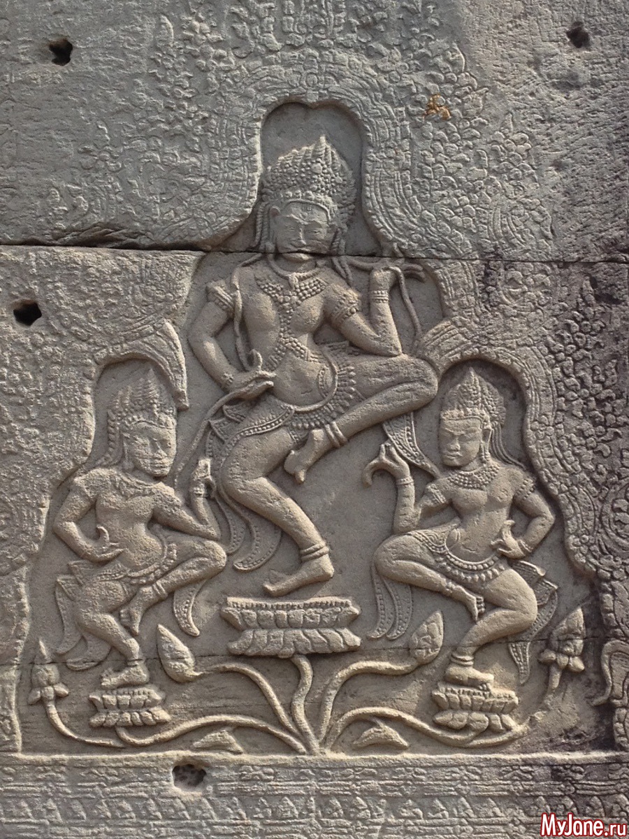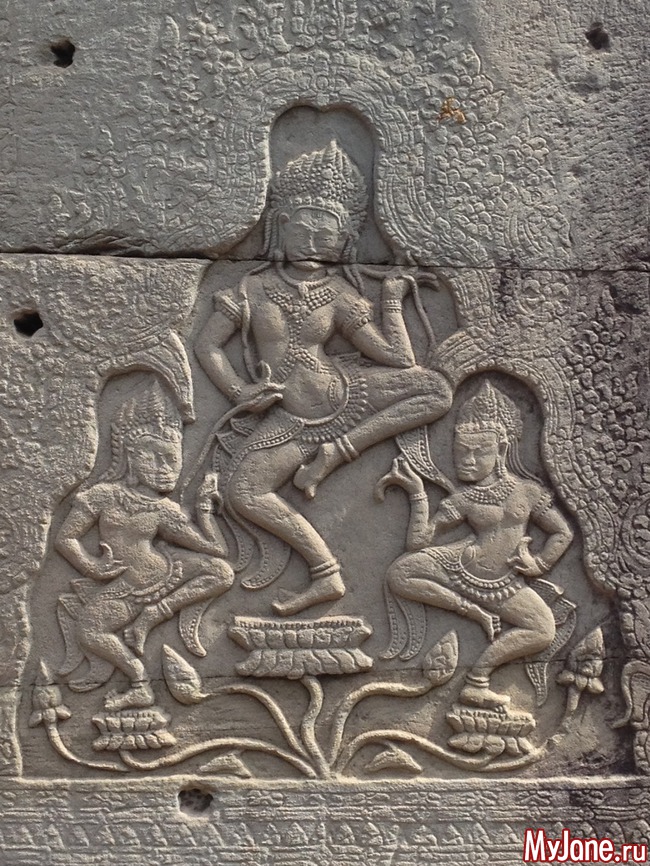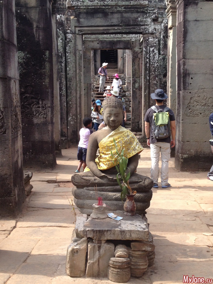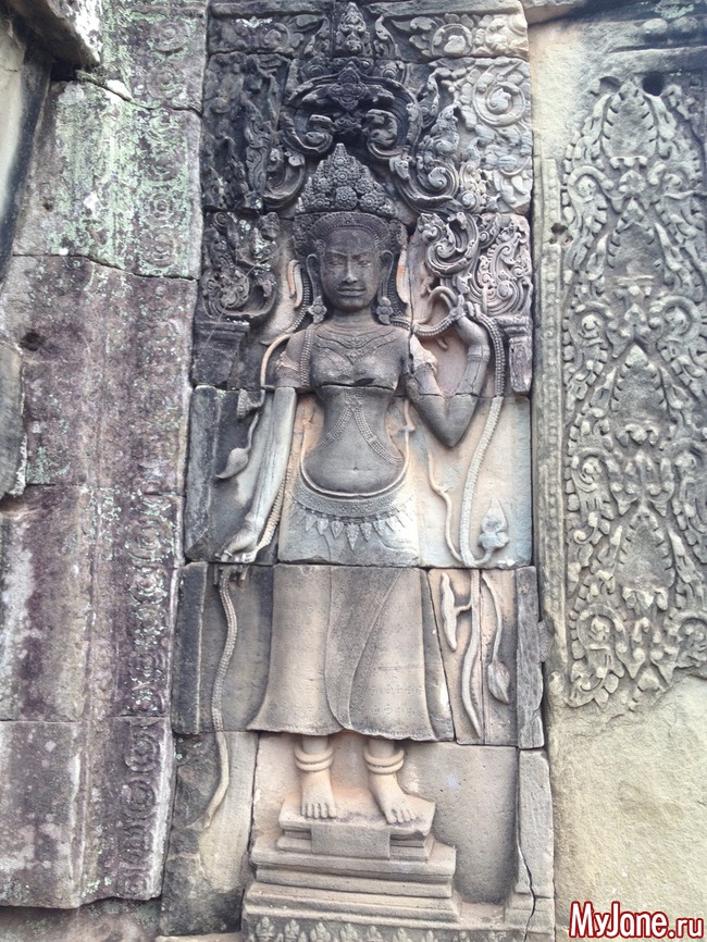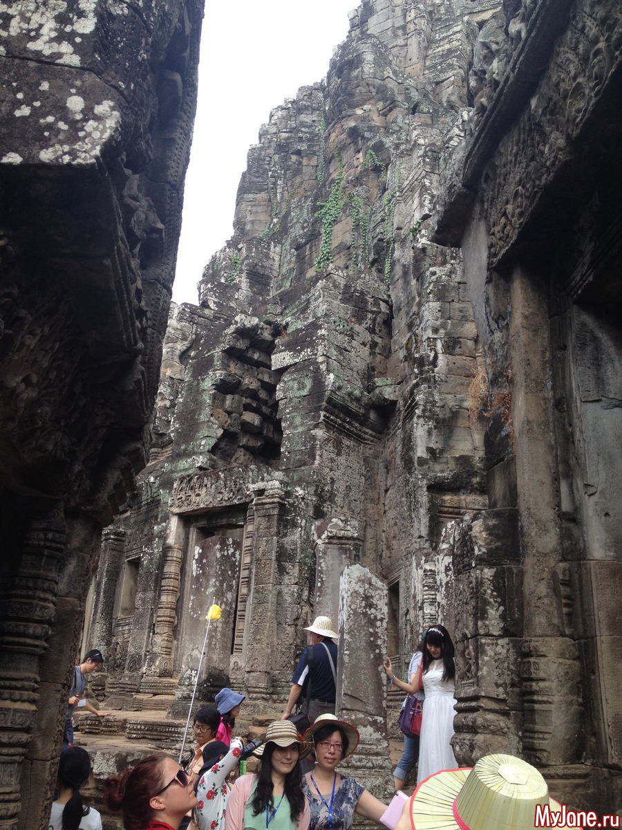 Байон напоминает лабиринт из множества зеркал, в которых отражаются исполинские головы. Где бы вы ни находились, эти загадочно улыбающиеся лица смотрят на вас отовсюду. Интересно, что во время строительства Байона Кхмерская империя состояла из 54 провинций, о чем символизирует количество башен храма, а всевидящие глаза Будды неусыпно следят за всеми ее подданными.