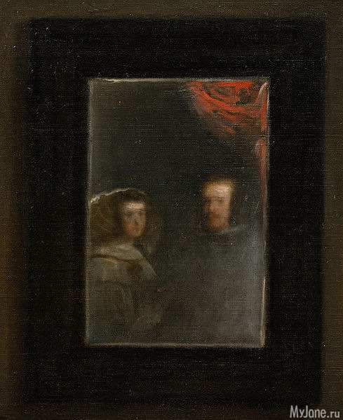 Эта необычная картина не просто изображает королевскую Семью, в центре её – юная инфанта Маргарита. А рядом с кистью в руке стоит сам Веласкес. Рядом с художником – зеркало, в котором заключается главная загадка и тайна картины: предположительно, в нём отражаются силуэты родителей юной инфанты – короля Филиппа и королевы Марианны.