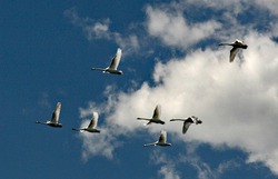 Листья клёна опадают нежно.Стаи лебедей спешат на юг.