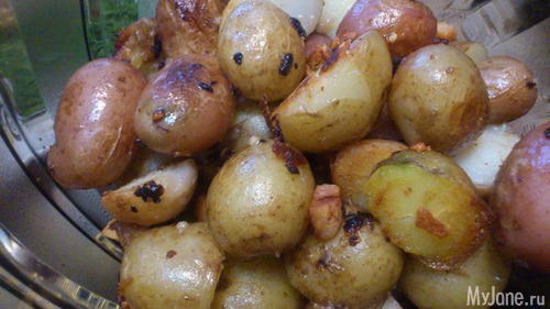 А мой товарисч отварил мелкой картошки, которой угостили (аж пол мешка дали,ыыыыыы), потом обжарил её на кусочках украинского сала и посыпал двленным чесноком- такой цимус вышел!!!! МММММ на фото не так красиво, как это вкусно! Ну, вы , гурманы, это поймете!