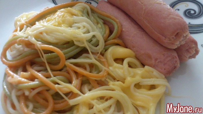 Вчера дома остались только макароны))))))))) но зато цветные, и с тертым сыром))) И привезенные с Украины замороженные сосиски с сыром. Очень даже вкусные оказались!