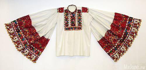 За бельем в 70-е годы XIX века последовали широкие и длинные рукава юношеских сорочек, расшитые красными листьями и цветами:
