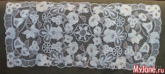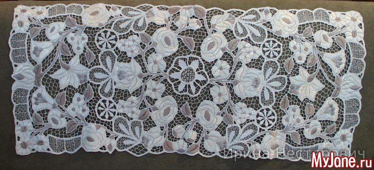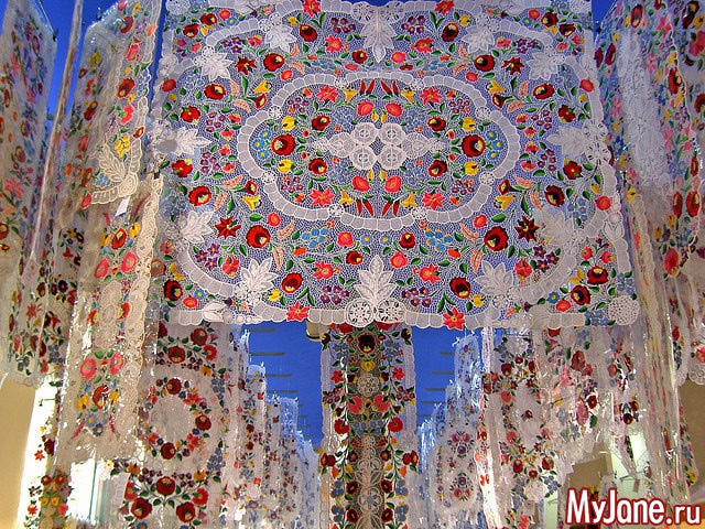 Вышивку «калочаи» часто совмещают с ришелье, создавая, таким образом, дорожки и салфетки на белом льне, знакомые любому туристу, побывавшему в Венгрии.