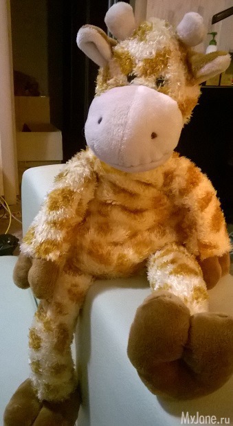 Сегодня героя выгуливали в парке. Илюхин с ходу выиграл суперприз в лотерее, чем нереально удивил мальчика, обслуживающего эту лотерею. Можно было выбрать любую игрушку, Илюхин выбрал такого жирафа и всю дорогу без умолку трещал о нем