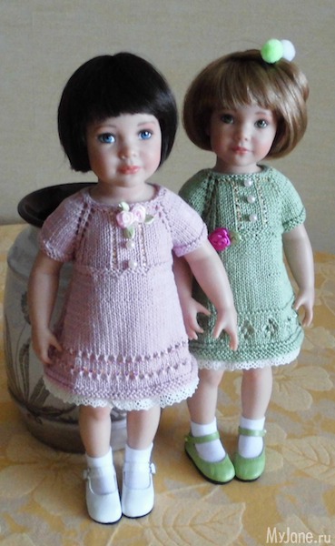 Изменена одежда и парички. Платьица связаны из хлопчатобумажных нитках на больших иголках вместо спиц.