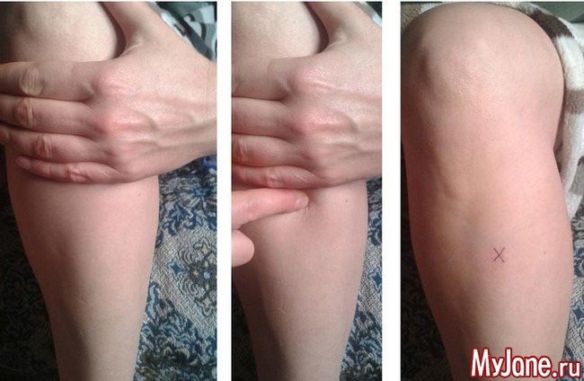 Чтобы найти эту точку, положите на колено согнутой правой ноги правую ладонь и немного отведите средний палец к наружному краю коленной чашечки.