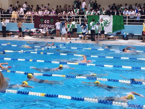 У них один бассейн для старшей школы. Один для младшей и один под открытым небом....