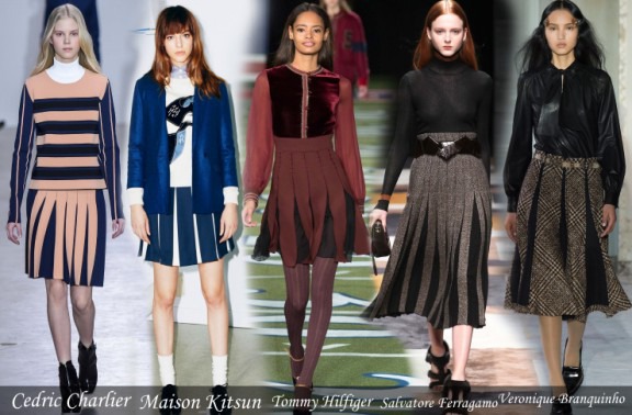 Мода на плиссированные юбки не так популярна, как в прошлых сезонах. Однако кутюрье и в этот раз попытались обыграть заезженный тренд, придав ему новизны с помощью сочетания контрастных цветов.Осенью 2015 года в моде юбки в разноцветную складку. Важно, чтобы цвета были контрастными.