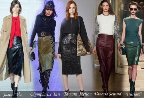 Первые месяцы осени позволяют щеголять в не слишком теплых но ультрамодных моделях кожаных юбок. для того, чтобы ваш образ не выглядел вульгарным, не выбирайте слишком обтягивающие варианты. Ваша юбка должна сидеть идеально, но не сжимать фигуру на подобие утягивающего белья.Идеальная длина - чуть ниже колен, оптимальный фасон - прямой или слегка сужающийся к низу.