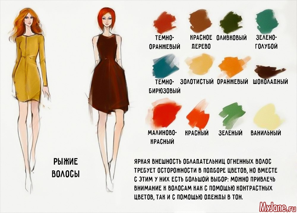 Подбирая гардероб, необходимо ориентироваться не только на сочетания цветов и стиля самой одежды, нужно также подумать, подходит ли данный тон к твоим волосам. Эта полезная информация поможет в будущем подбирать одежду, которая будет идеально смотреться!