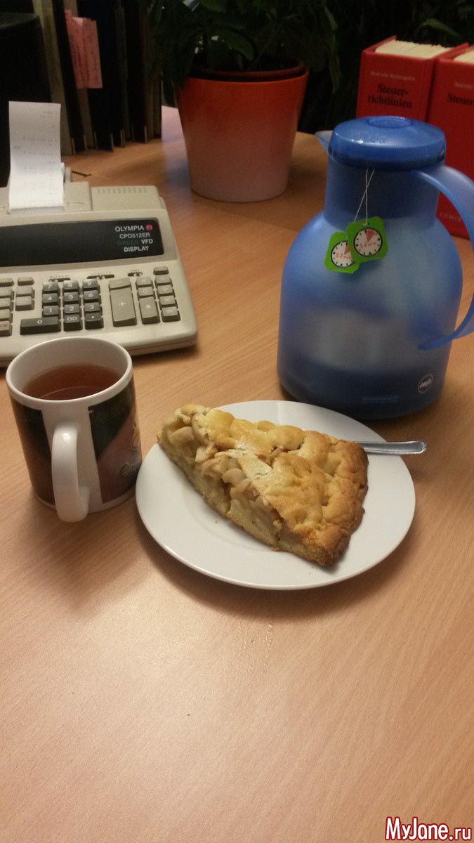 Пришла сегодня на работу, а на столе кусочек Шарлотки.. Приятно, но я же на диете