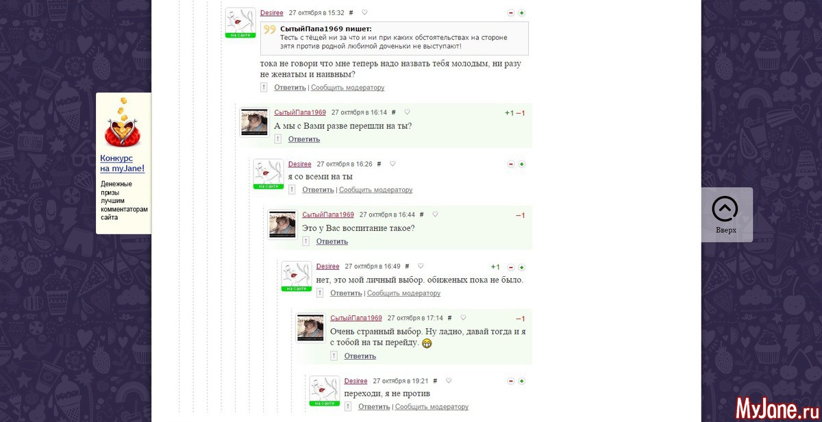 Давайте, проверим. С Галей мы перешли на "ты" где женщина не хотела рожать, а муж настаивал. Смотрим - и точно! Полюбуйтесь - это Ваше "неправ во всём"