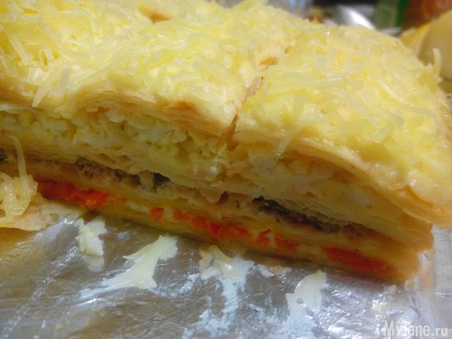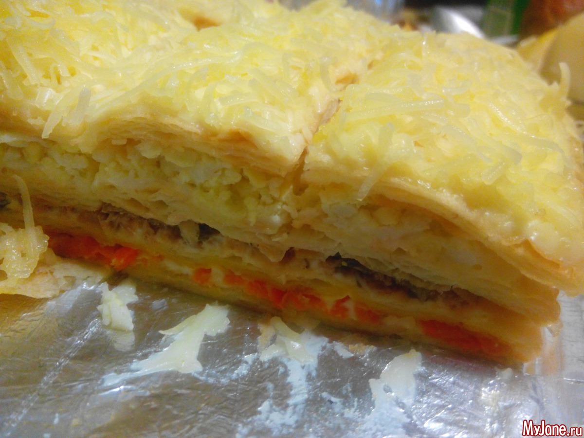 1. Корж, майонез, морковь с луком пассированные