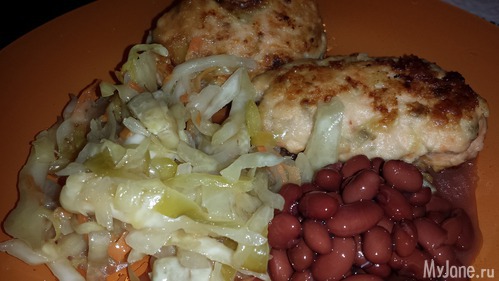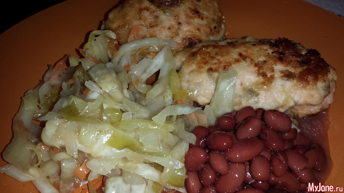 Рыбные котлеты из мальмы и капустки с фасольками всякие...