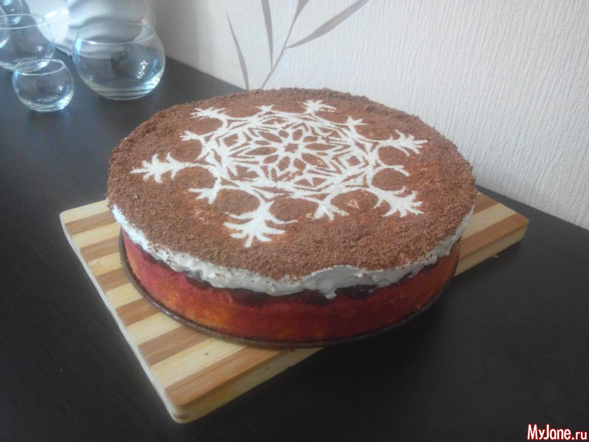 Бисквит + вишня + крем сливки-маскарпоне