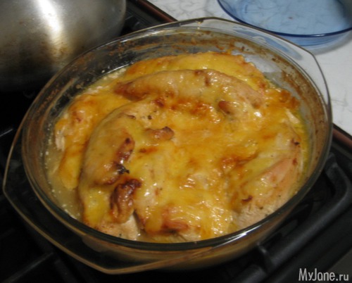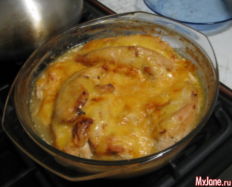 Куриное филе с сыром по Гали-Дезире рецепту. В тарелках я всегда не успеваю сфоткать - есть хочется