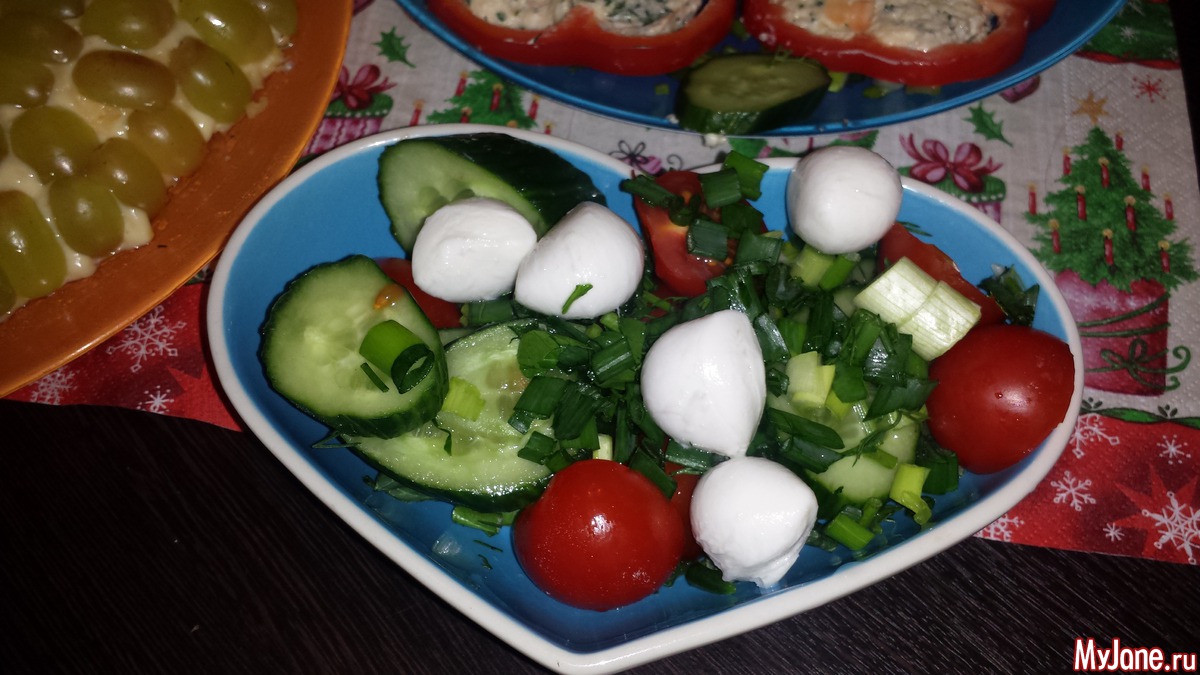 Просто помидоры и огурцы по 700 руб за кг с сыром , и все...чисто к утке