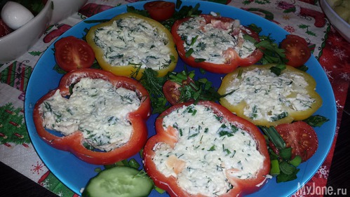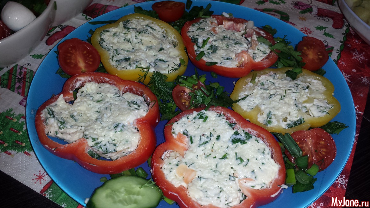 и перцы нафаршировала сыром, маслом, зеленю и чесночком чуть чуть